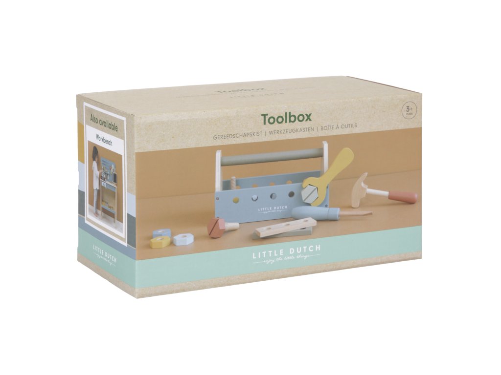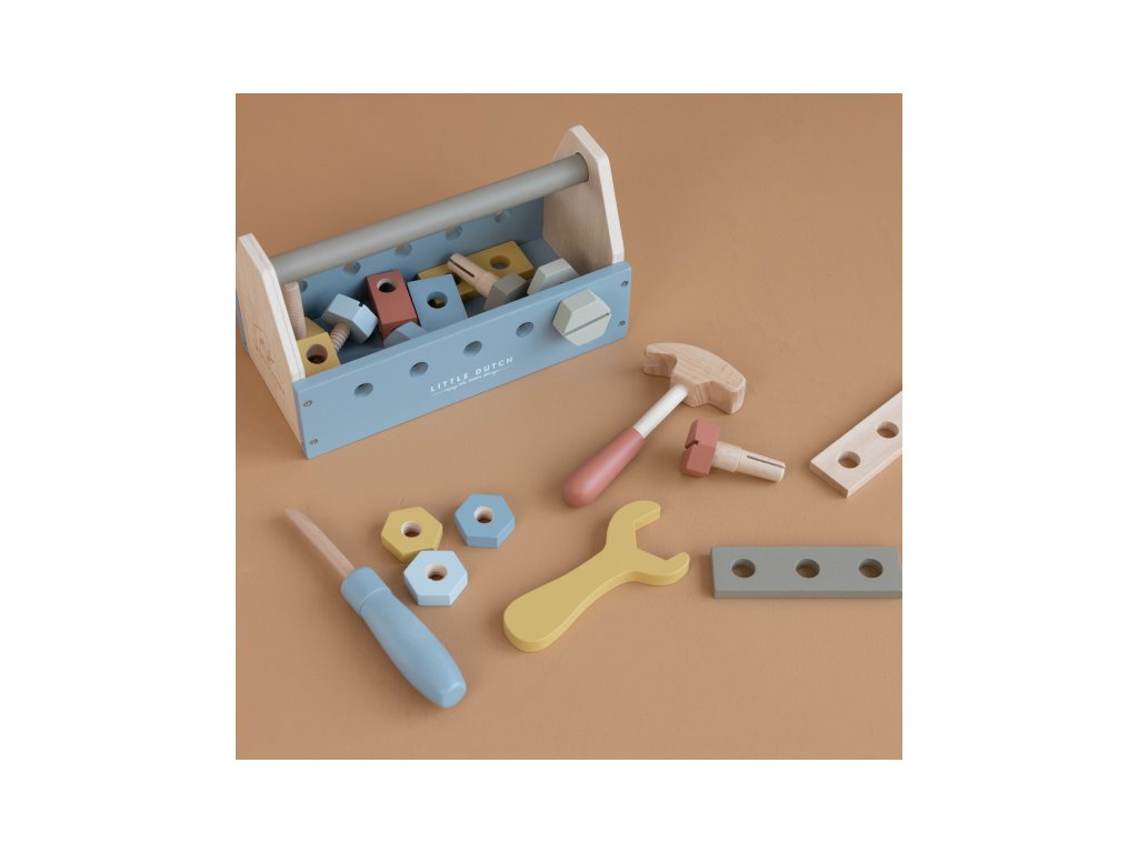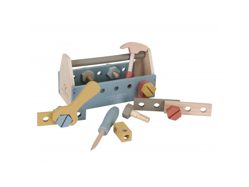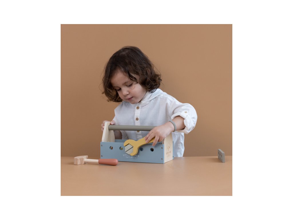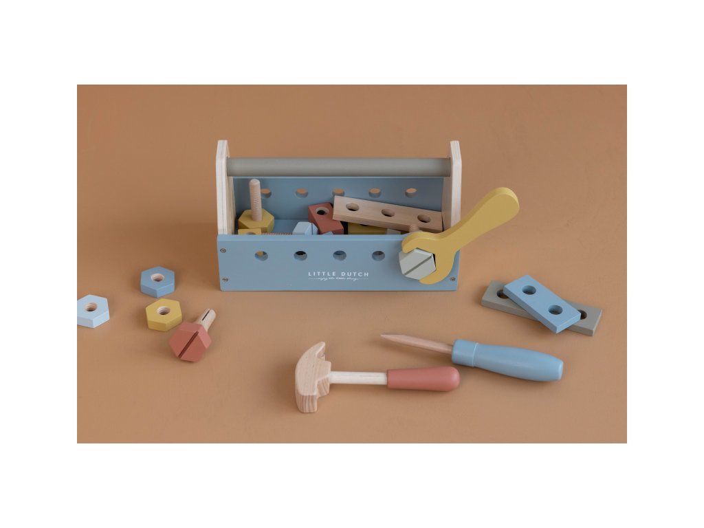S touto sadou dreveného náradia v praktickom prenosnom boxe zvládne vaše dieťa opraviť doma všetko, čo je potrebné. Po ruke bude mať skrutkovač, kladivko aj francúzsky kľúč. V boxe sú aj skrutky, matice a panely s otvormi na tréning zručnosti. Box na náradie môže slúžiť aj ako zatĺkačka.
