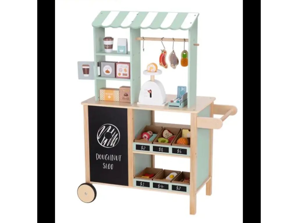 Tento drevený predajný stánok pre deti je dokonalý darček pre malých predavačov a predavačky. Skvelý doplnok do každej detskej izby, ktorý zaručene prinesie hodiny zábavy a učenia.
